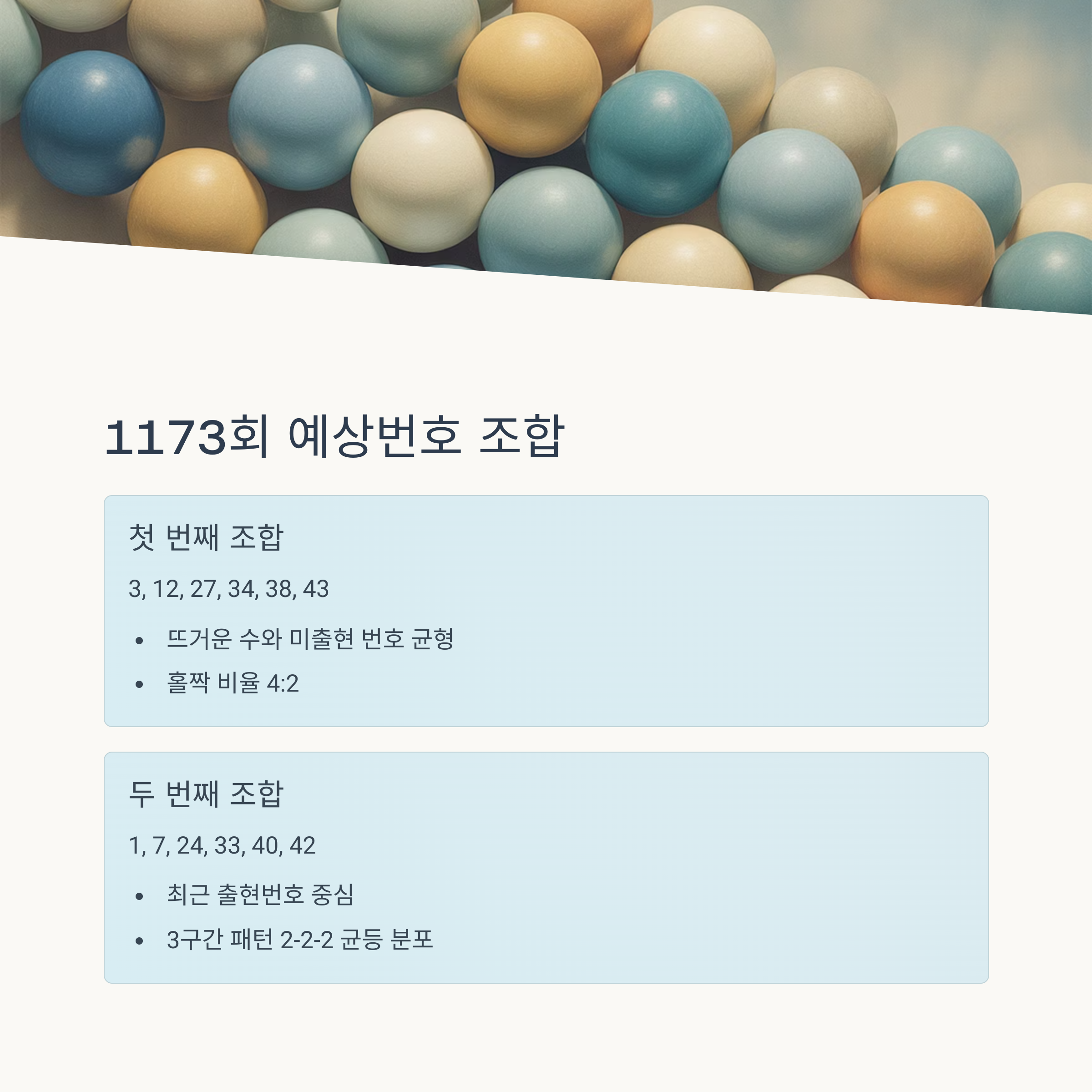 종합적인 분석 결과를 바탕으로 1173회 예상번호 조합을 제시해보겠습니다.